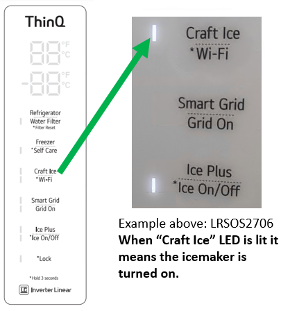 Make sure the Craft Icemaker is powered on. Most models will have a physical power button on the icemaker itself: