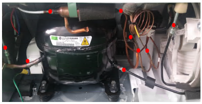 Below are common places to check for High Side leaks while the system is pressurized…