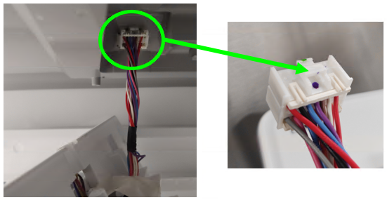 Step 5: There is only 1 wiring harness that will need to be disconnected. The release tab is located on top of the connector. Press down on the release tab and the harness can be disconnected:
