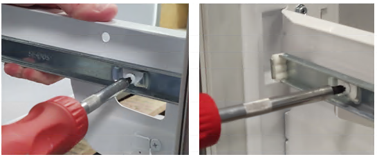 Step 2: Remove the 2 phillips screws from the door railing. There will be one located on each side of the railing close to the door: