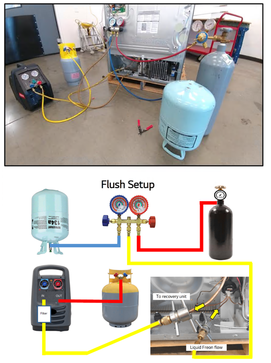 - Remember when you flush with liquid refrigerant it will need to be recovered.