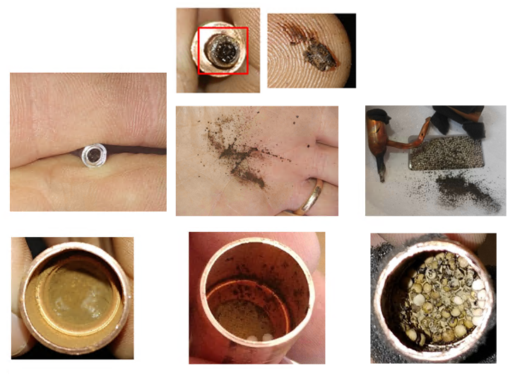 - If you do find contamination in the Drier as shown below or in the yoder loop it is recommended to replace the condenser as those contaminants would have traveled through it to make it to the drier and the condenser is likely contaminated as well.