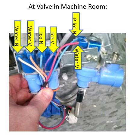 Water Valves… On almost all models there will be a Pilot Valve on the back of the refrigerator in the machine room. Then there will also be a secondary water valve, the location of the secondary valve can change by model and layout. The secondary valve will typically be found in the left refrigerator door on French Door models. On SxS refrigerators the secondary valve is typically found in the machine room with the pilot valve or in the water tank area in the refrigerator section. Both the Pilot and Secondary valves must energize together for the icemaker to fill.