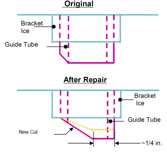 If you have now determined 12Vdc is getting to the Pipe Heater, and have replaced the water valve assembly, and made a cut into the guide tube, but you are still experiencing a frozen fill tube, you have one more option that generally repairs this issue if the other procedures didn’t.