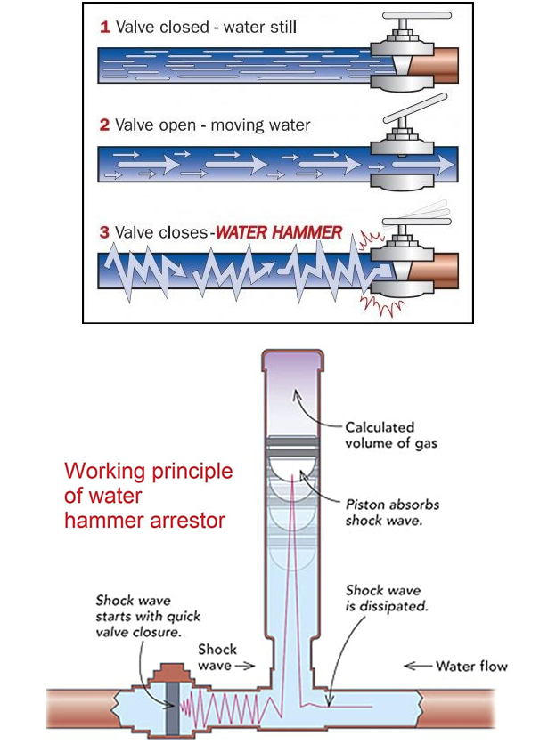 Water hammer is usually caused in high pressure (e.g. main pressure) water systems either when a tap is turned off quickly, or by fast-acting solenoid valves, which suddenly stop the water moving through the pipes and sets up a shock wave through the water, causing the pipes to vibrate and shudder. This is not an issue with the dishwasher.
