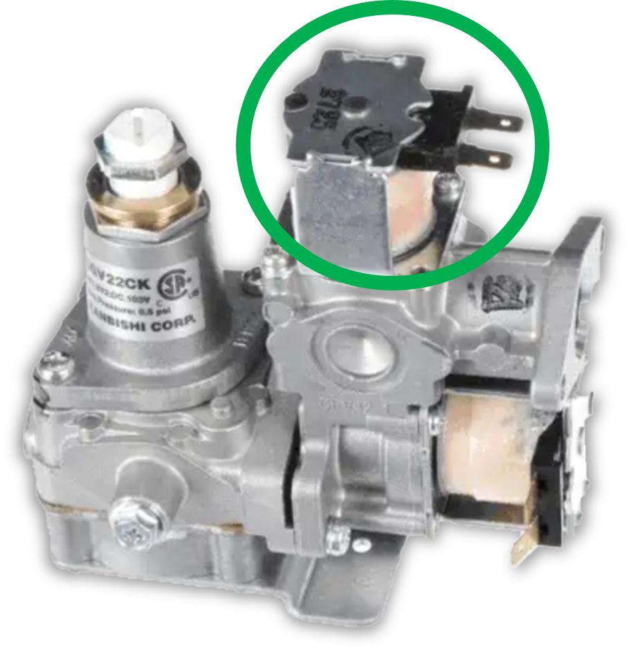 Also check that the gas valve (1) is 90Vdc or greater or the valve may make noise trying to open with low voltage.